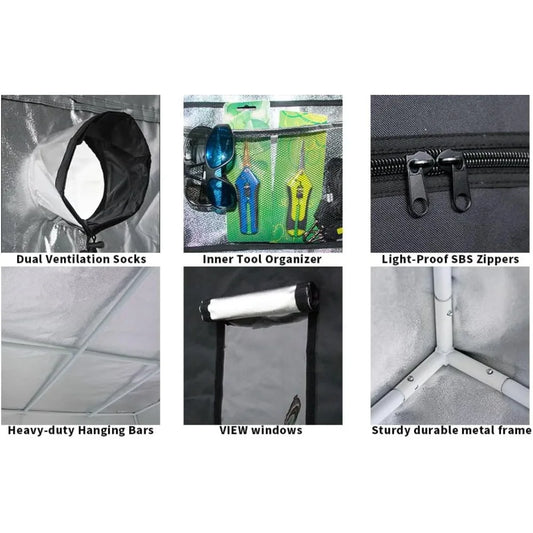 2-in-1 108"X48"X80"Grow Tent Reflective 600D Canvas Mylar Grow Tents